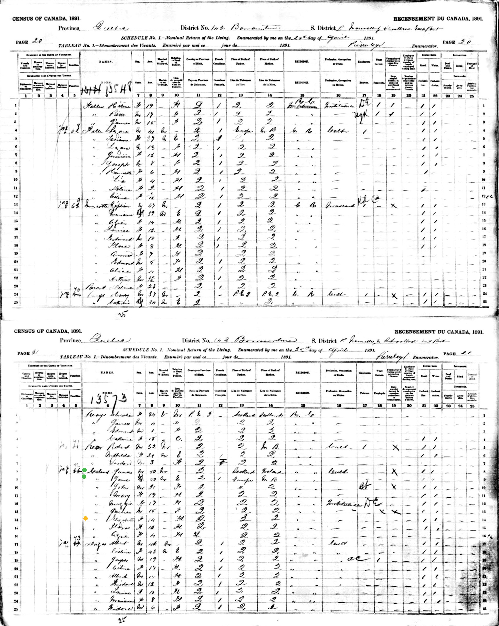 1891 census - Bonaventure, P Nouvelle y Shoolbred Rose Port, Province of Quebec, CanadaAncestors on this page: James Calvert, [Marie Jeanne] Jane [Fallu] Calvert, Elizabeth CalvertThe name of the area in Quebec where Bonaventure is located has changed its name several times.