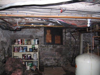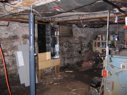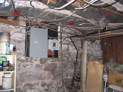 One last look at the "old spaghetti factory" (electrical box) that was attached to the front wall of the basement.