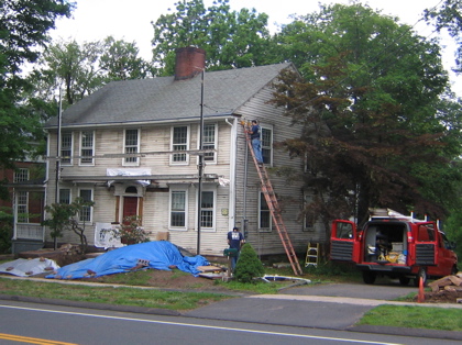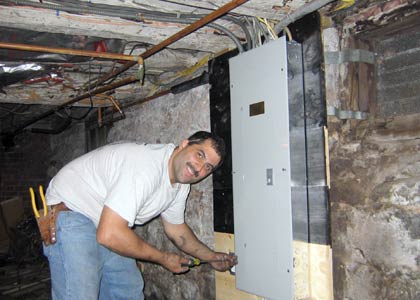 Joe Ternullo buttons up the electrical panel. Both first and second floor are now recombined as a single family unit.