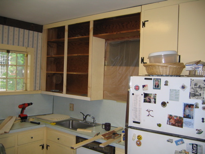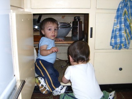 May 2007: Evan and Sam (who were born just before we started this project) inspect the kitchen cabinets