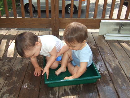 Next Sam and Evan take a dip in this tiny swimming pool.