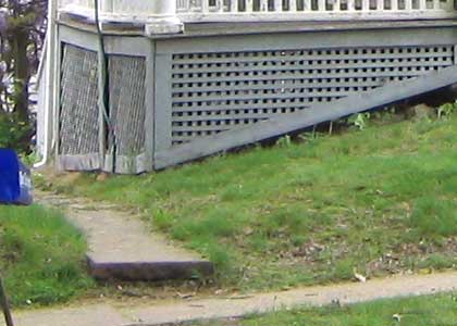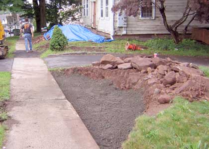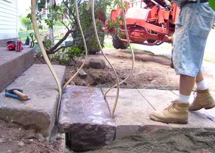 Here is a before shot of the little sidewalk that goes down the south side of the house. When the sidewalks were lowered in the mid-60's, the walk no longer connected properly. Not only was it above the sidewalk it sat back about 7 inches.