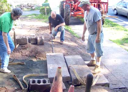 The main walkway starts to take shape. We are joined by Bob's mother, Florence Vess who came to watch but who couldn't stand by and watch us have all the fun.