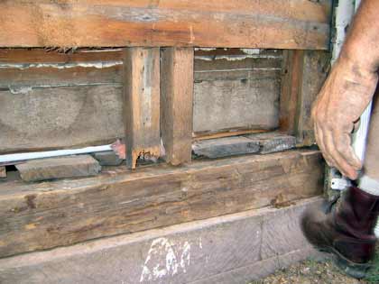 Kurt points out one of the more appalling examples of rotted wood.