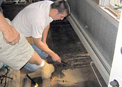 The end of one floor board in the living room needed to be pulled up and replaced. A victim of the same termite attack.